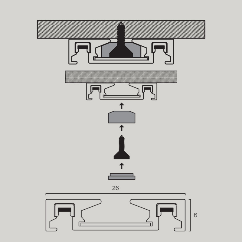 Релсата е с иновативна магнитна система за закрепване, която позволява лесно поставяне и плъзгане на магнитните осветители по шината - без сложно поставяне, без необходимост от демонтаж и монтаж на осветителите, за да ги поставите на желаното място.