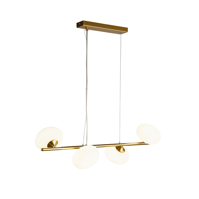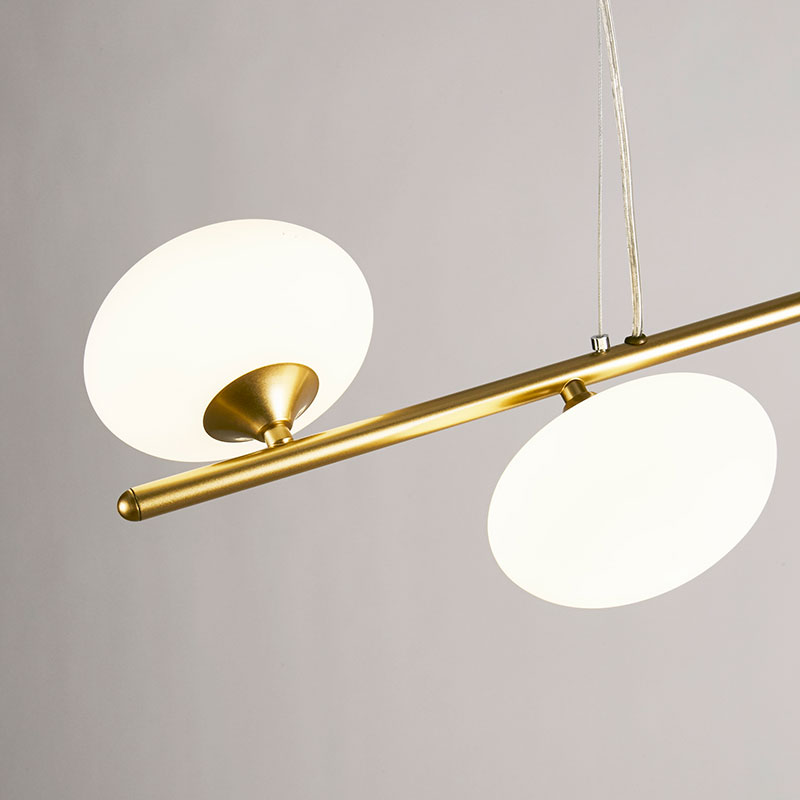 Модерен линеен полилей LUX & BELLE е осветително тяло, изработено от златист метал и разсейвател от опалово стъкло. Осветителното тяло е подходящо за осветление за трапезария, хол, спалня и офис. Производител Searchlight, Англия.