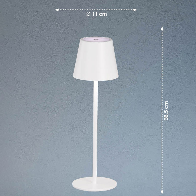 Настолна лампа за градина Viletto с батерия, изработена от метал в бял цвят с елегантна класическа форма и регулируема височина.