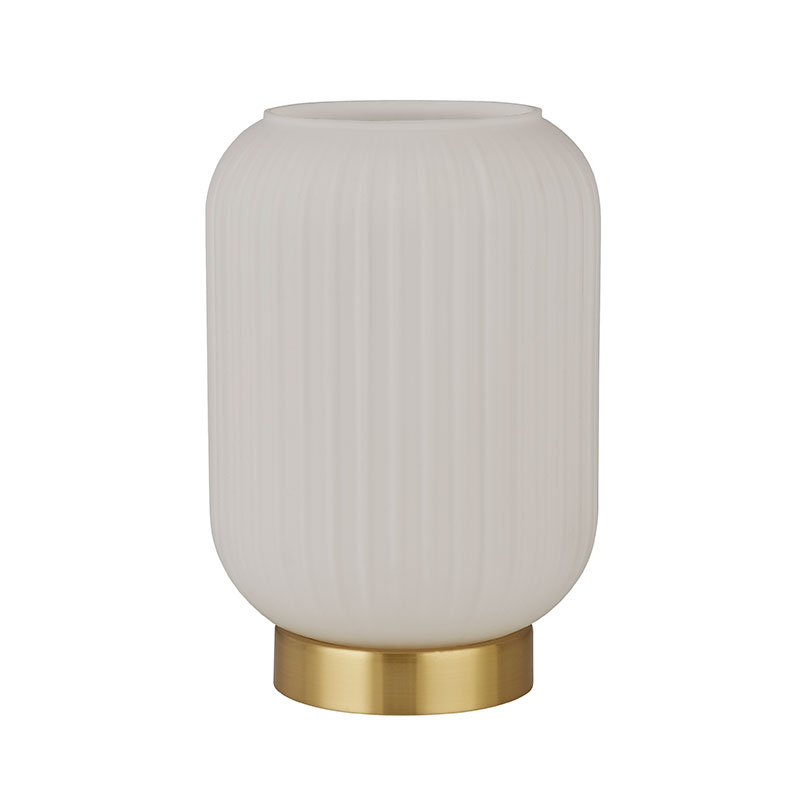Нощна лампа Pearl впечатлява с изчистен и елегантен дизайн, който съчетава матирано бяло стъкло със сатенирана месингова основа.