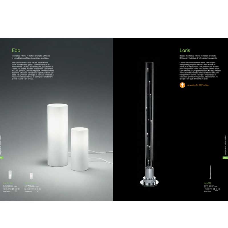 Настолна лампа Edo с модерен и минималистичен дизайн, изработена от хромирана метална вътрешна рамка и дифузер от бяло, окислено стъкло. Производител Идеал Лукс, Италия.