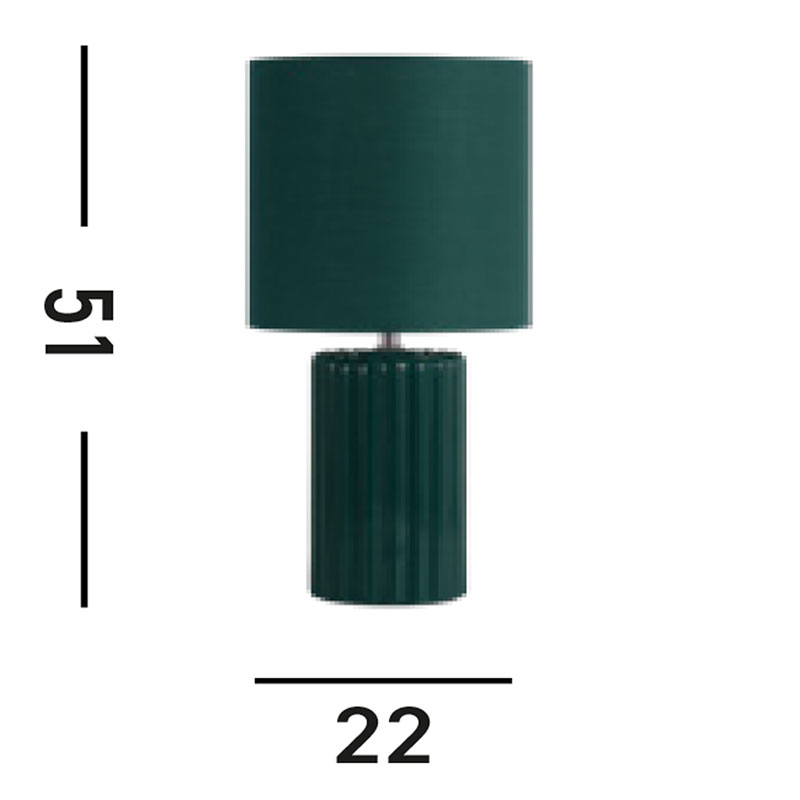 Нощната лампа Groove е изработена с керамична оребрена основа в стилен зелен цвят, допълнена с текстилен абажур в същия нюанс. Тази елегантна и изчистена визия придава модерен и естетичен акцент на осветителното тяло, което се вписва отлично в различни интериори.