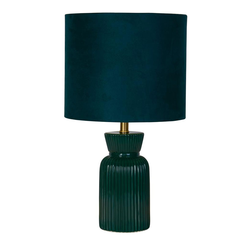 Нощна лампа Tia е изработена от керамика с фина релефна текстура и абажур с кадифена външна част в наситен изумруден цвят и вътрешна част от TC материал. Комбинацията от дълбок зелен нюанс и елегантна форма придава на настолната лампа изразен характер и стилно присъствие в интериора.