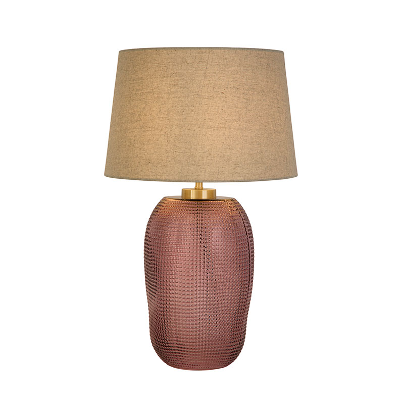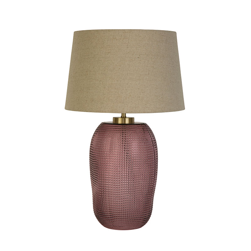 Нощната лампа Amethyst е изработена от рециклирано розово стъкло с релефна текстура, която придава изтънчен и елегантен вид. Лампата е съчетана с бежов абажур от натурален лен, което добавя мекота и естествен акцент в интериора. Тази красива нощна лампа е оборудвана с ключ на кабела за удобно включване и изключване.