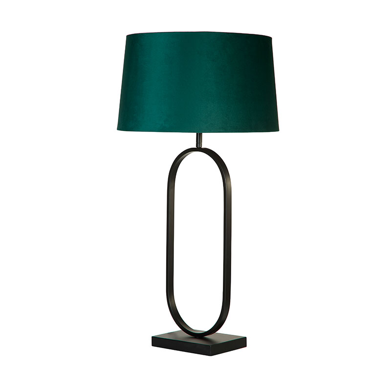 Нощната лампа Modish впечатлява със съвременен и елегантен дизайн, който съчетава матово черна метална основа с издължена овална форма и изискан смарагдово зелен (emerald) абажур от кадифе. Изчистените линии и контрастът между тъмния метал и наситения цвят придават модерен и луксозен акцент на интериора.