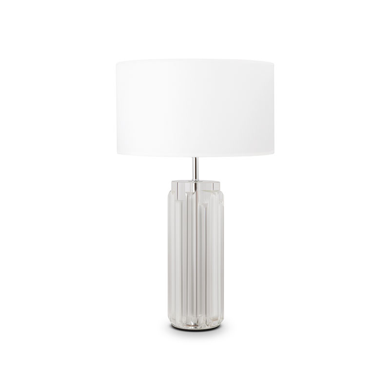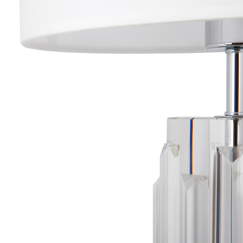 Осветително тяло - нощна лампа Muse, изработен от метал в цвят хром и релефно стъкло, с акценти, наподобяващи кристали. С абажур от памучен бял плат. Съчетанието на стъкло и метал в хромиран цвят създава модерен и изящен външен вид. Чудесно допълнение към вашия интериор, особено в спалнята или всекидневната, където можете да създадете уютна и релаксираща обстановка. Производител MAYTONI, Германия.