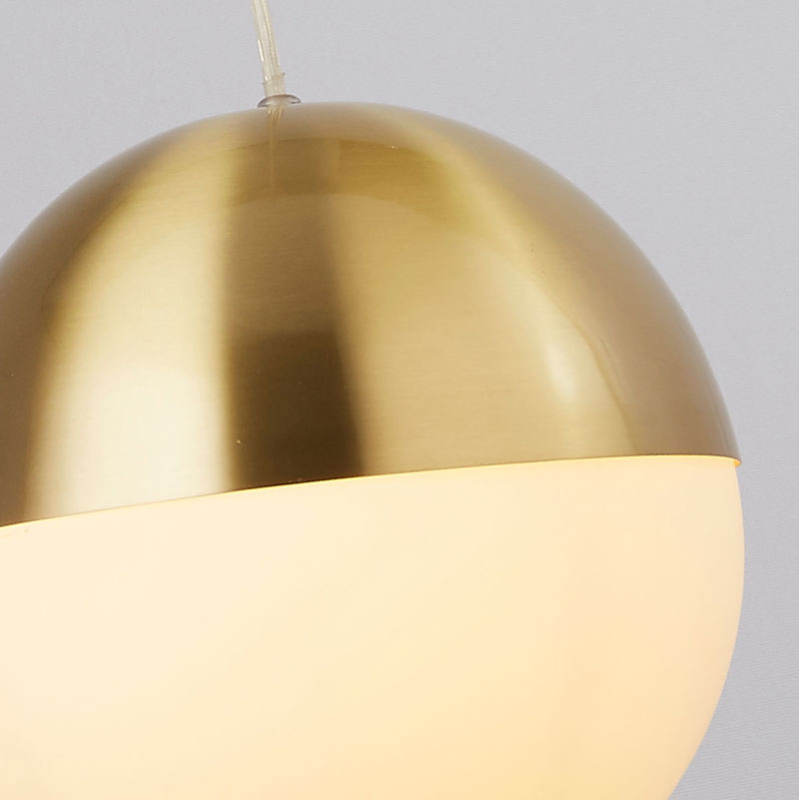 Металното тяло от висококачествена стомана със сатинирано месингово покритие добавя усещане за лукс и изтънченост, докато опаловият стъклен абажур омекотява светлината и я разпръсква равномерно, създавайки приятна и уютна атмосфера без отблясъци.