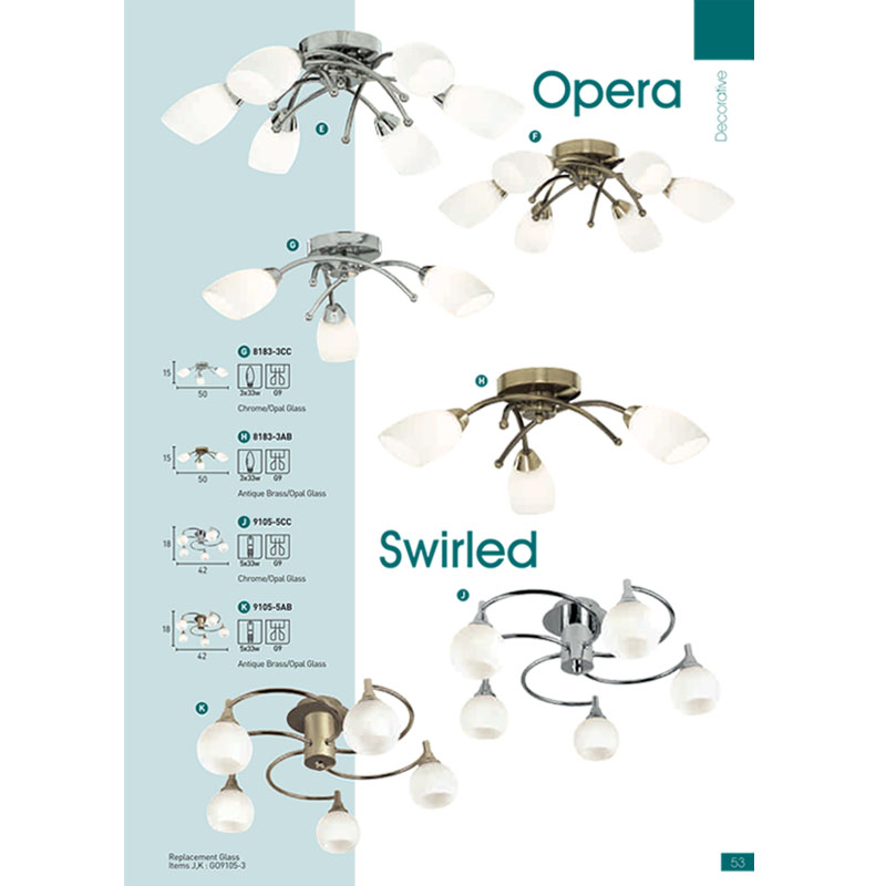 Електрическата част на това осветителното тяло позволява използването на халогенни, енергоспестяващи или LED (диодна) крушки. Максимум - халогенни крушки - 3 х 33W G9.