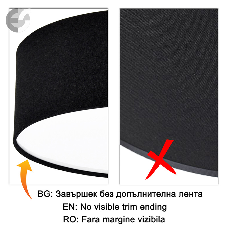 Осветително тяло - стилен и модерен плафон, изработен от метална основа и текстилен черен абажур. Дизайнът на плафона е подходящ за спалня и всекидневна. Производител COUP LIGHT, България.