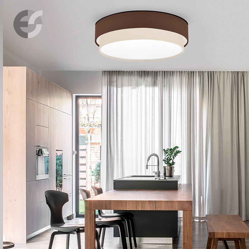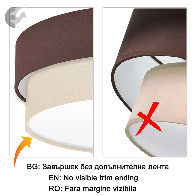 Осветително тяло - плафон CAKE, изработен от метална основа, два текстилни абажура и бял PVC разсейвател. Плафонът се предлага в над 50 различни комбинации от цветове. Изберете най-подходящата за вас комбинация от цветове и добавете към всяка стая модерен акцент и светлина. Осветителното тяло е подходящо за осветление на спалня, осветление за всекидневна, осветление за детска стая, осветление за кухня, осветление за коридор.