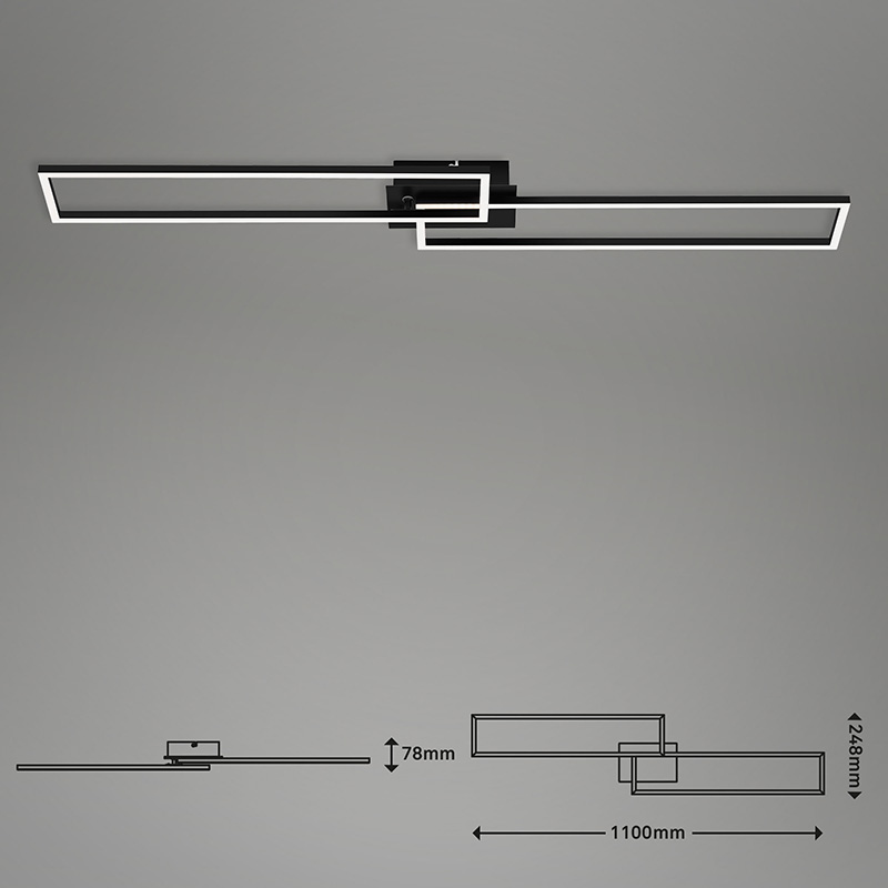 LED плафон FRAME CCT, изработен от метална основа и пластмасов подвижни разсейватели в бял цвят. Плафонът е с включено в комплекта дистанционно. Лесно и удобно включвайте и изключвайте осветлението; променяйте цвета на светлината от топла (2700K) към неутрална дневна (5000К); регулирайте силата на светене от слабa към силнa светлина и обратното; изпозлвайте функцията за нощен режим; настройте таймер за изключване. Плафонът е с функция памет, чрез която помни вашите последни настройки. Дизайнът на осветителното тяло е подходящ за осветление за всекидневна, осветление за коридор, осветление за спалня. Производител BRILO, Германия.