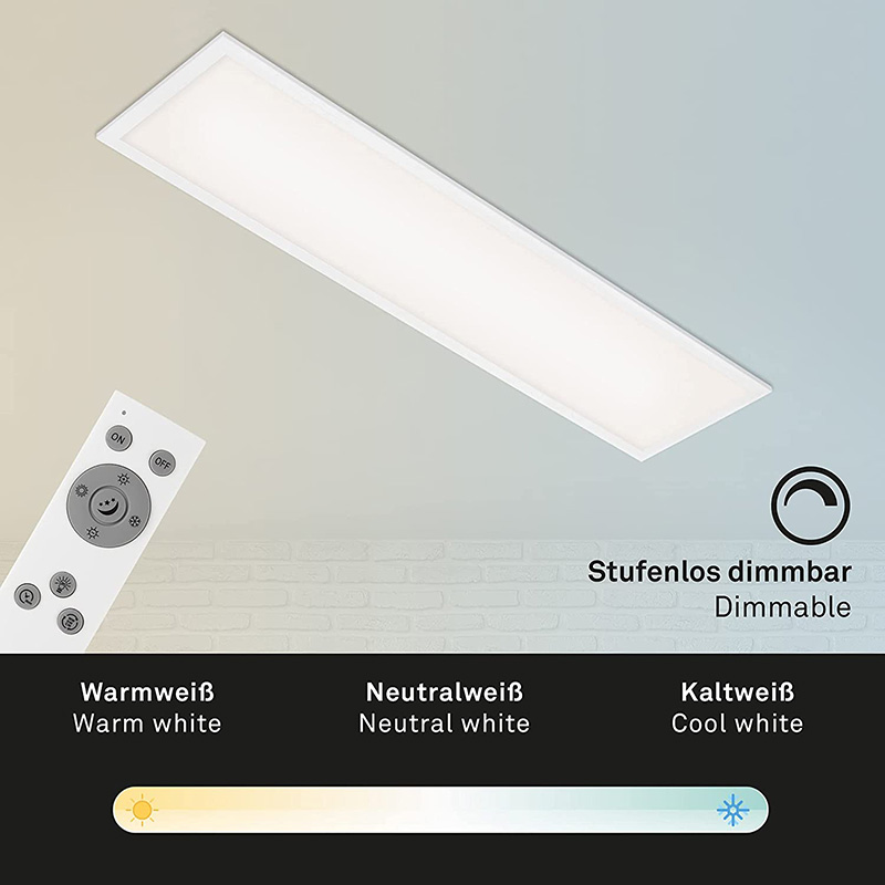 LED плафон PIATTO CCT, изработен от метална основа и пластмасов разсейвател в бял цвят. Плафонът е с включено в комплекта дистанционно. Лесно и удобно включвайте и изключвайте осветлението; променяйте цвета на светлината от топла (3000K) към студена (6500К); регулирайте силата на светене от слабa към силнa светлина и обратното; изпозлвайте функцията за нощен режим. Дизайнът на осветителното тяло е подходящ за осветление за всекидневна, осветление за коридор, осветление за спалня. Производител BRILO, Германия.