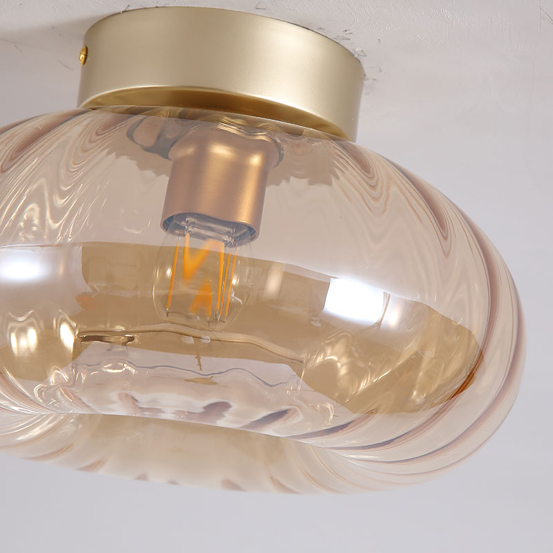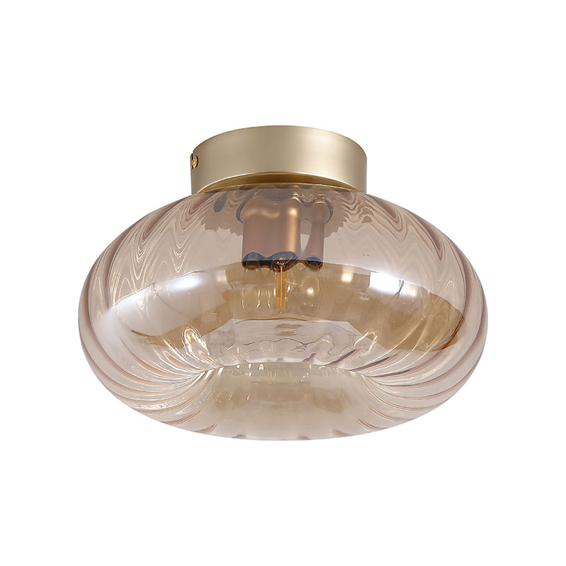 Плафон Celestial съчетава съвременен минимализъм с винтидж топлина, благодарение на елегантната си комбинация от златиста метална основа и амбър стъклен абажур. Неговата органична, почти скулптурна форма създава визуален акцент, докато кехлибареният нюанс на стъклото придава мека, уютна светлина.