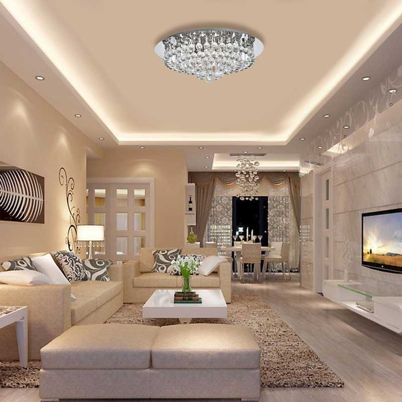 Осветително тяло - плафон със стилен и елегантен дизайн, изработен от метална основа с хромирано покритие и ефектна декорация от нанизи кристални. Серия осветителни тела Hanna на Searchlight, England.