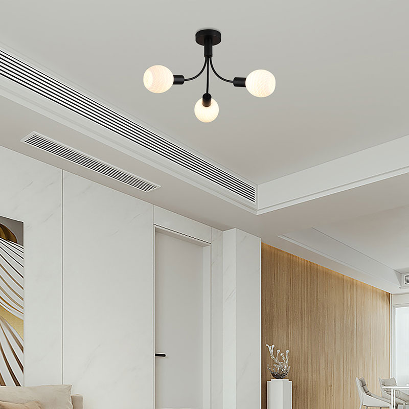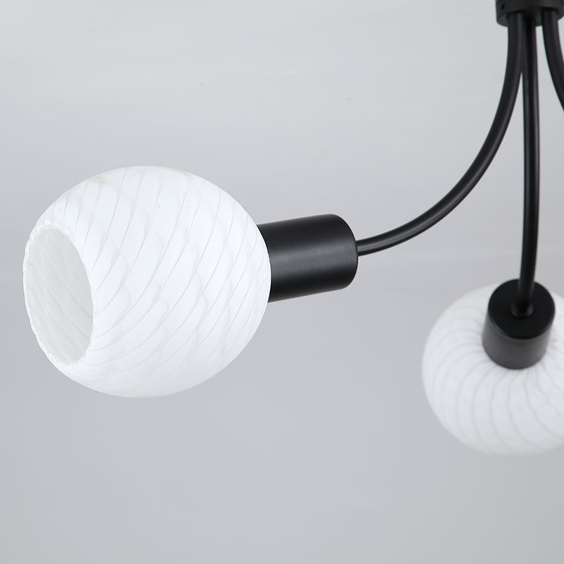 Плафон Nova 3Lt е стилно и практично осветително решение с изчистена модерна визия.Осветителното тяло впечатлява с елегантна конструкция от черен метал и три спираловидни опалови стъклени абажура, които придават лекота и визуален баланс на интериора.