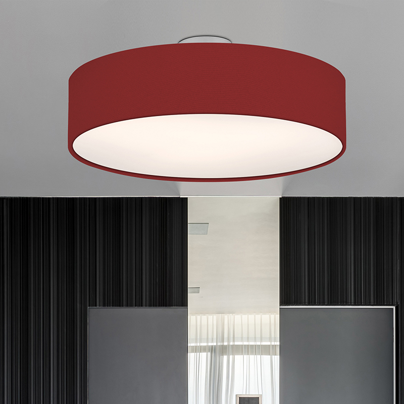 Осветително тяло - стилен и модерен плафон, изработен от метална основа, текстилен абажур и PVC разсейвател. Плафонът свети нагоре, встрани и надолу. Дизайнът на плафона е семпъл, което го прави подходящ за всеки интериор. Лампата се инсталира на тавана, като не се изисква сглобавяне, единствено трябва да премахнете защитното фолио на разсейвателя и да го поставите в плафона. Плафонът за всекидневна, осветление за детска стая, осветление за кухня, осветление за коридор, осветление за заведение, осветление за хотел. Производител CoupLight, България.