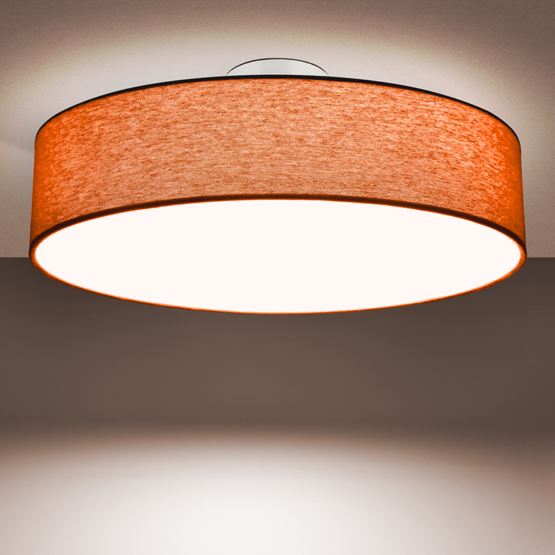 Осветително тяло - стилен и модерен плафон, изработен от метална основа, текстилен абажур и PVC разсейвател. Плафонът свети нагоре, встрани и надолу. Дизайнът на плафона е семпъл, което го прави подходящ за всеки интериор. Лампата се инсталира на тавана, като не се изисква сглобавяне, единствено трябва да премахнете защитното фолио на разсейвателя и да го поставите в плафона. Плафонът за всекидневна, осветление за детска стая, осветление за кухня, осветление за коридор, осветление за заведение, осветление за хотел. Производител CoupLight, България.