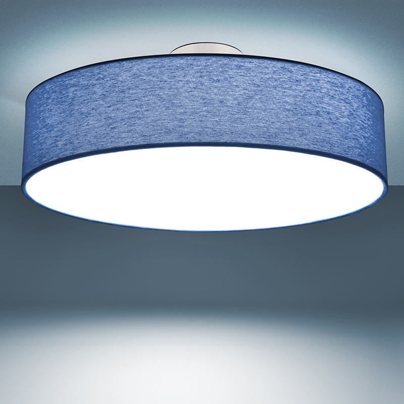 Осветително тяло - стилен и модерен плафон, изработен от метална основа, текстилен абажур и PVC разсейвател. Плафонът свети нагоре, встрани и надолу. Дизайнът на плафона е семпъл, което го прави подходящ за всеки интериор. Лампата се инсталира на тавана, като не се изисква сглобавяне, единствено трябва да премахнете защитното фолио на разсейвателя и да го поставите в плафона. Плафонът за всекидневна, осветление за детска стая, осветление за кухня, осветление за коридор, осветление за заведение, осветление за хотел. Производител CoupLight, България.