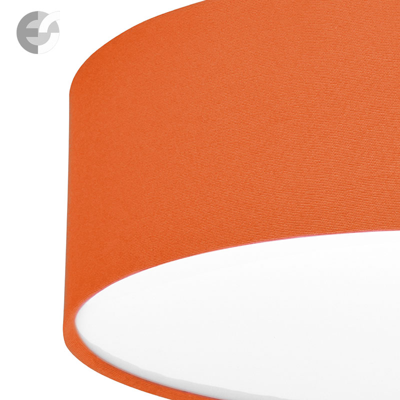 Осветително тяло - стилен и модерен плафон, изработен от метална основа, текстилен абажур оранжев цвят и PVC разсейвател. Дизайнът на плафона е семпъл, което го прави подходящ за всеки интериор. Лампата се инсталира на тавана, като не се изисква сглобавяне, единствено трябва да премахнете защитното фолио на разсейвателя и да го поставите в плафона. Плафонът за всекидневна, осветление за детска стая, осветление за кухня, осветление за коридор, осветление за заведение, осветление за хотел. Производител CoupLight, България.