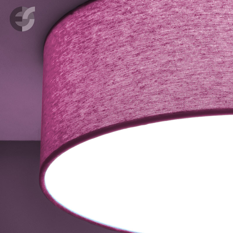 Осветително тяло - стилен и модерен плафон, изработен от метална основа, текстилен абажур в лилав цвят и PVC разсейвател. Дизайнът на плафона е семпъл, което го прави подходящ за всеки интериор. Лампата се инсталира на тавана, като не се изисква сглобавяне, единствено трябва да премахнете защитното фолио на разсейвателя и да го поставите в плафона. Плафонът за всекидневна, осветление за детска стая, осветление за кухня, осветление за коридор, осветление за заведение, осветление за хотел. Производител CoupLight, България.