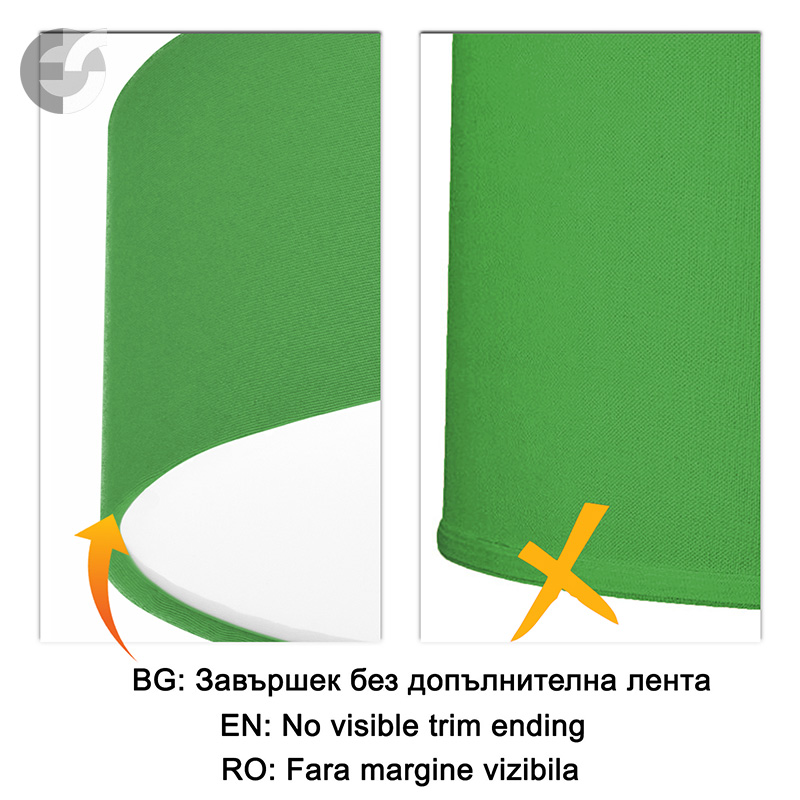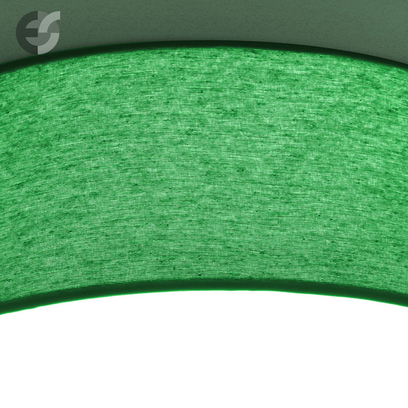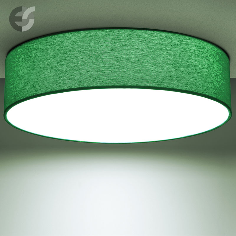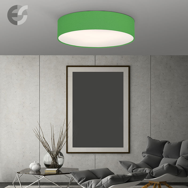 Осветително тяло - стилен и модерен плафон, изработен от метална основа, текстилен абажур в зелен цвят и PVC разсейвател. Дизайнът на плафона е семпъл, което го прави подходящ за всеки интериор. Лампата се инсталира на тавана, като не се изисква сглобавяне, единствено трябва да премахнете защитното фолио на разсейвателя и да го поставите в плафона. Плафонът за всекидневна, осветление за детска стая, осветление за кухня, осветление за коридор, осветление за заведение, осветление за хотел. Производител CoupLight, България.