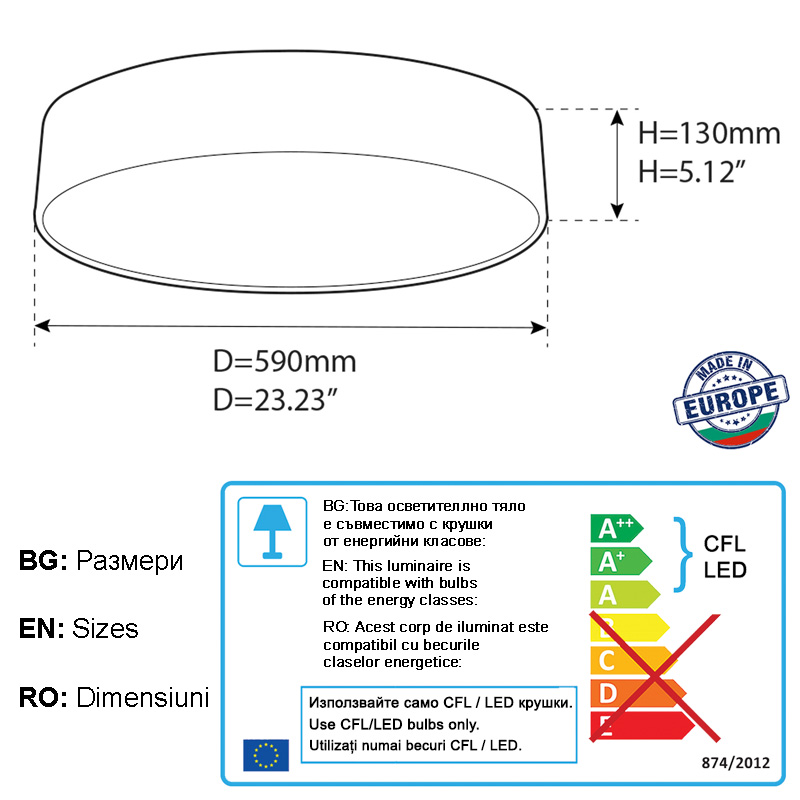 Диаметър на плафона (mm): 570