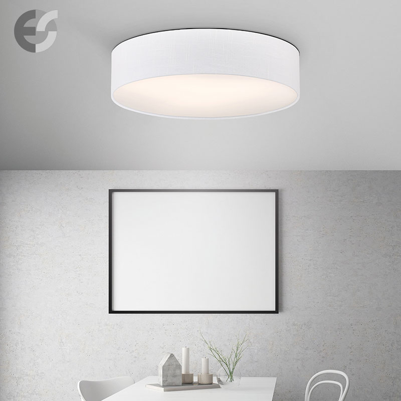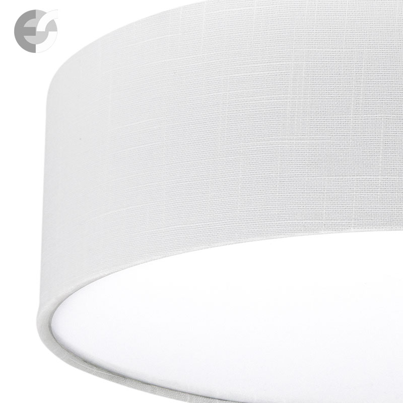 Осветително тяло - стилен и модерен плафон, изработен от метална основа и релефен текстилен абажур в бял цвят и PVC разсейвател. Дизайнът на плафона е семпъл, което го прави подходящ за всеки интериор. Лампата се инсталира на тавана, като не се изисква сглобавяне, единствено трябва да премахнете защитното фолио на разсейвателя и да го поставите в плафона. Плафонът е подходящ за всекидневна, осветление за детска стая, осветление за кухня, осветление за коридор, осветление за заведение, осветление за хотел. Производител CoupLight, България.