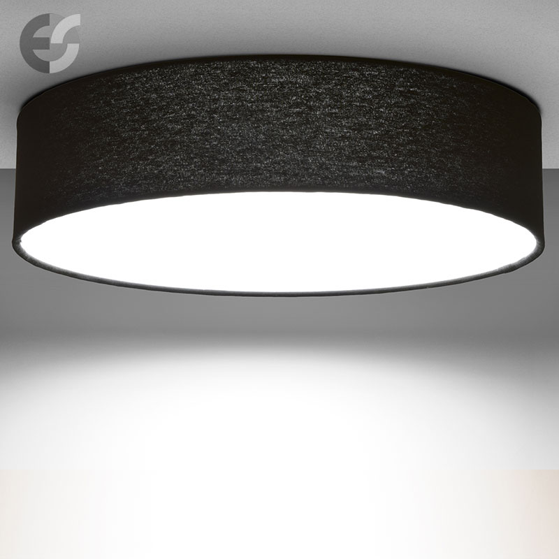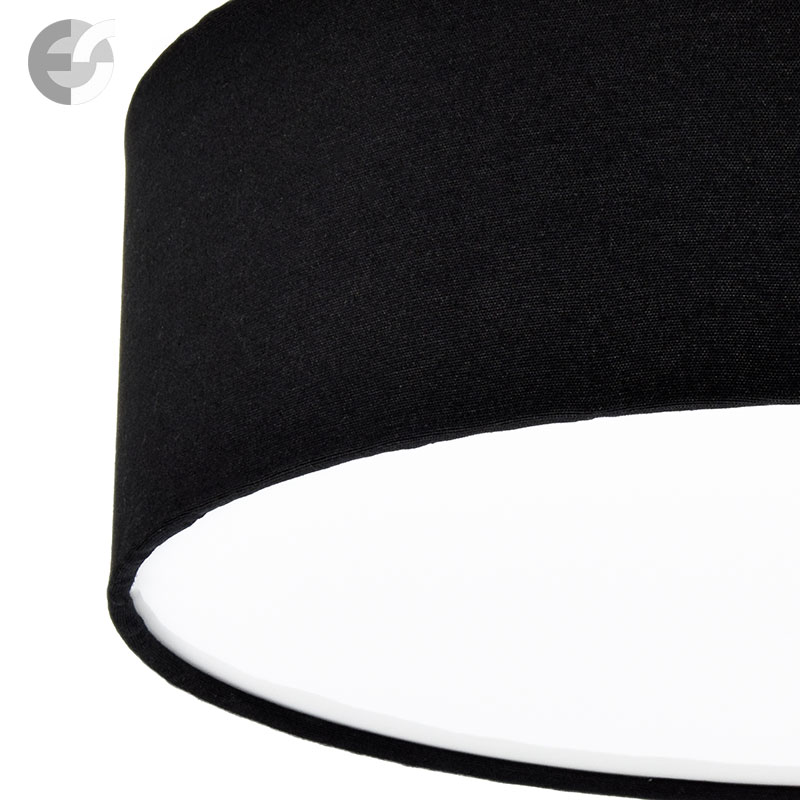 Осветително тяло - стилен и модерен плафон, изработен от метална основа и текстилен абажур в черен цвят и PVC разсейвател. Дизайнът на плафона е семпъл, което го прави подходящ за всеки интериор. Лампата се инсталира на тавана, като не се изисква сглобавяне, единствено трябва да премахнете защитното фолио на разсейвателя и да го поставите в плафона. Плафонът е подходящ за всекидневна, осветление за детска стая, осветление за кухня, осветление за коридор, осветление за заведение, осветление за хотел. Производител CoupLight, България.