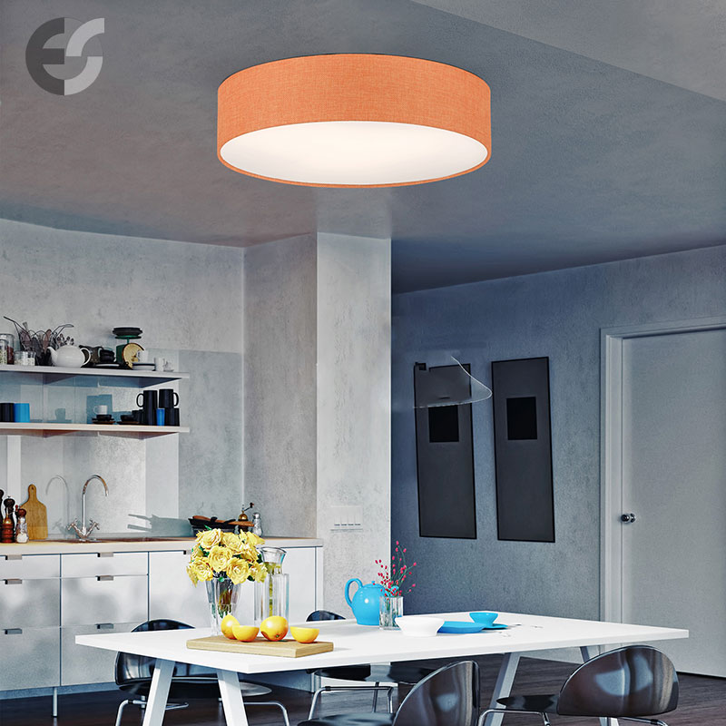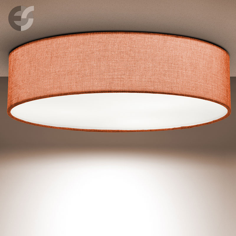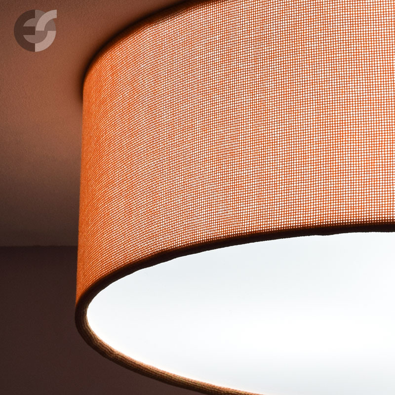 Осветително тяло - стилен и модерен плафон, изработен от метална основа и текстилен абажур от плат тип мрежа в оранжев цвят и PVC разсейвател. Дизайнът на плафона е семпъл, което го прави подходящ за всеки интериор. Лампата се инсталира на тавана, като не се изисква сглобавяне, единствено трябва да премахнете защитното фолио на разсейвателя и да го поставите в плафона. Плафонът е подходящ за всекидневна, осветление за детска стая, осветление за кухня, осветление за коридор, осветление за заведение, осветление за хотел. Производител CoupLight, България.