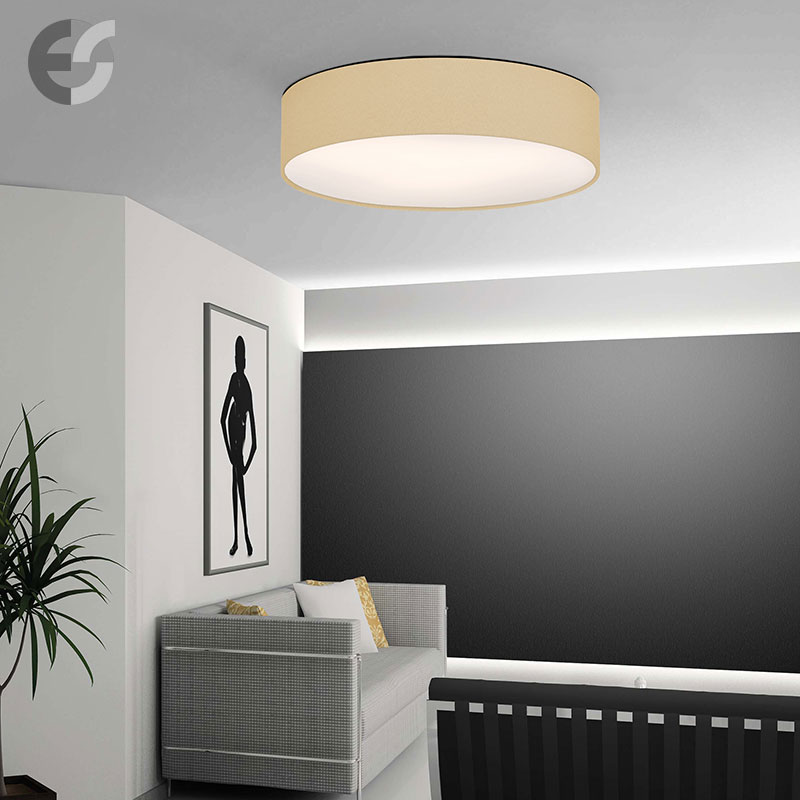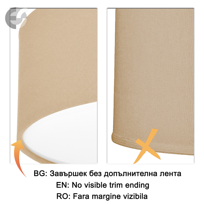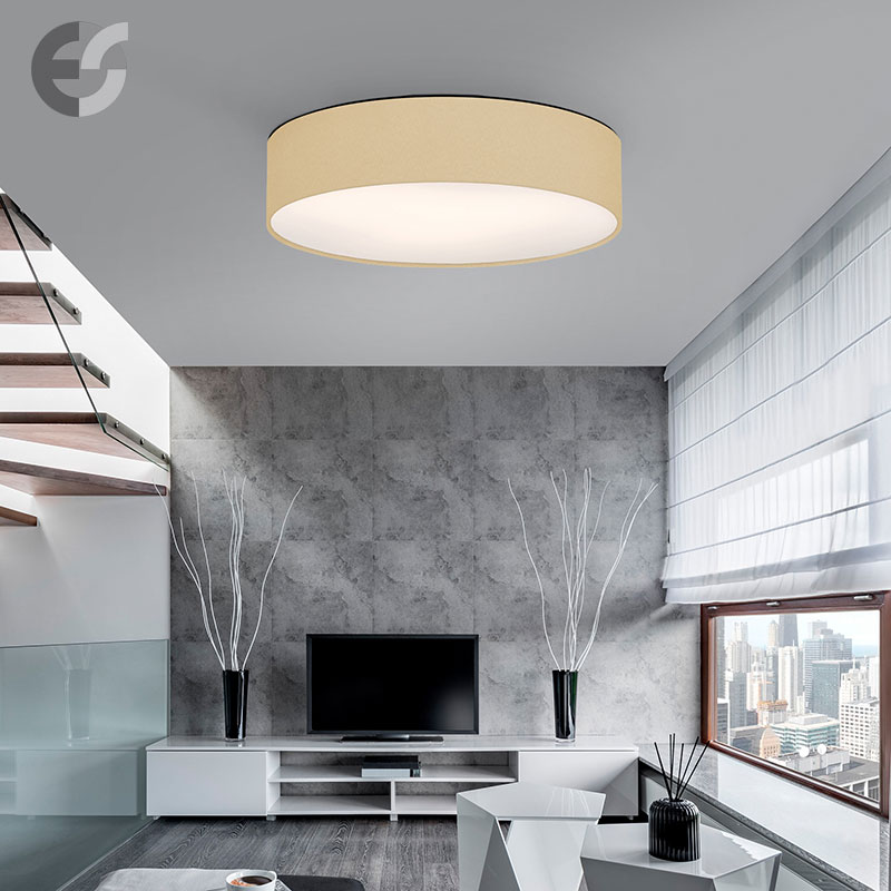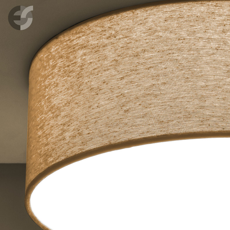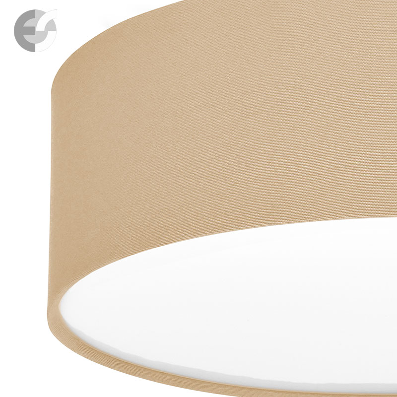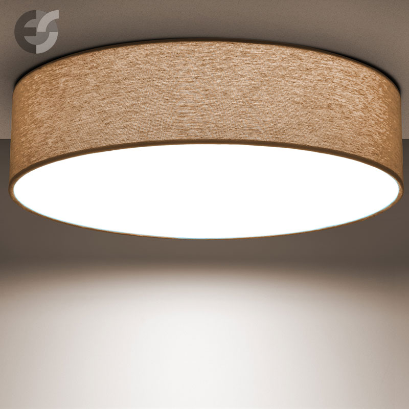 Осветително тяло - стилен и модерен плафон, изработен от метална основа, текстилен абажур в цвят капучино и PVC разсейвател. Дизайнът на плафона е семпъл, което го прави подходящ за всеки интериор. Лампата се инсталира на тавана, като не се изисква сглобавяне, единствено трябва да премахнете защитното фолио на разсейвателя и да го поставите в плафона. Плафонът за всекидневна, осветление за детска стая, осветление за кухня, осветление за коридор, осветление за заведение, осветление за хотел. Производител CoupLight, България.