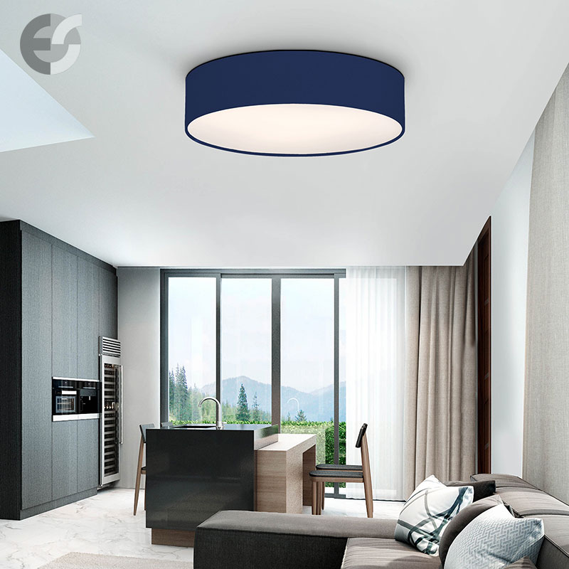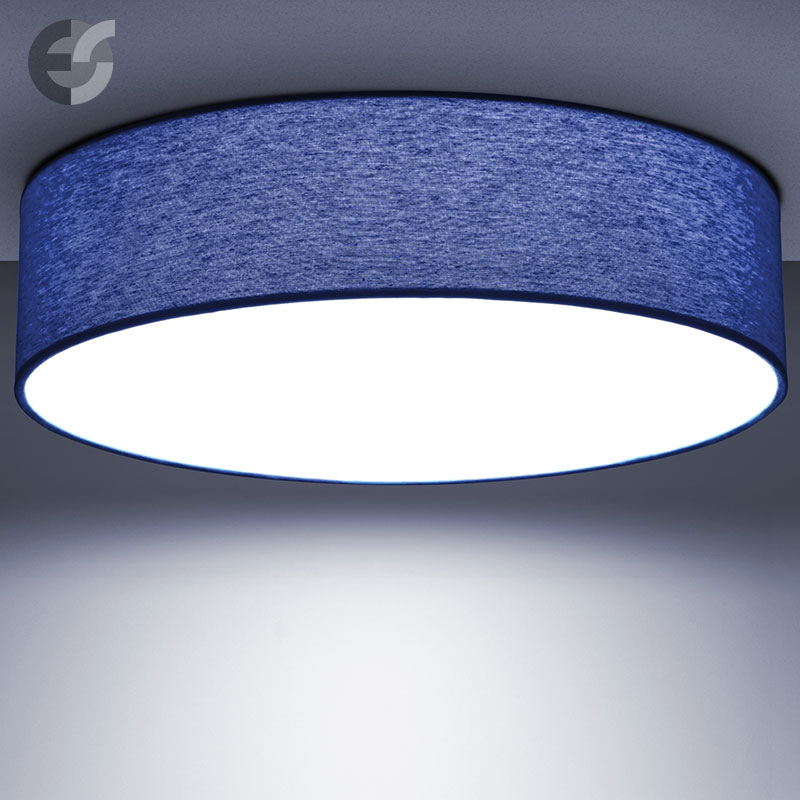 Осветително тяло - стилен и модерен плафон, изработен от метална основа, текстилен абажур в тъмносин цвят и PVC разсейвател. Дизайнът на плафона е семпъл, което го прави подходящ за всеки интериор. Лампата се инсталира на тавана, като не се изисква сглобавяне, единствено трябва да премахнете защитното фолио на разсейвателя и да го поставите в плафона. Плафонът за всекидневна, осветление за детска стая, осветление за кухня, осветление за коридор, осветление за заведение, осветление за хотел. Производител CoupLight, България.