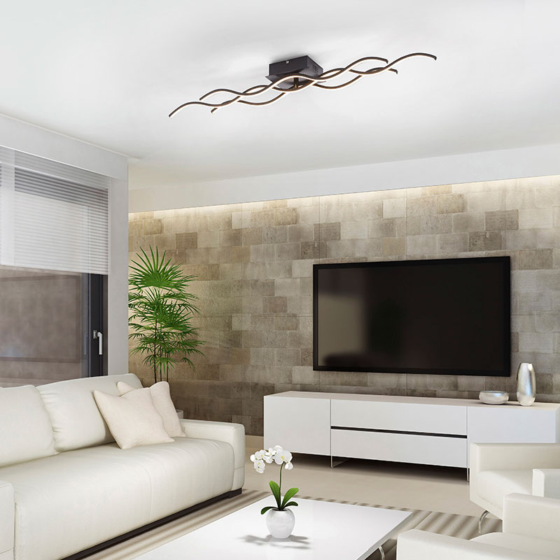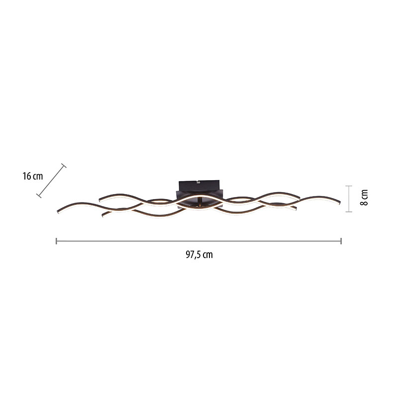 Осветително тяло - LED модерен плафон Wave, изработен от метална черна основа и разсейвател от 3 вълнообразни светлинни рамена. Подходящ за осветление на всекидневна, осветление на трапезария и осветление на спалня. Производител Leuchten Direkt, Германия.