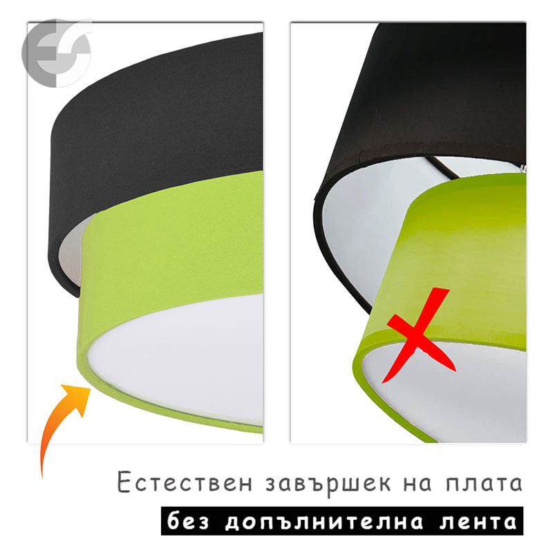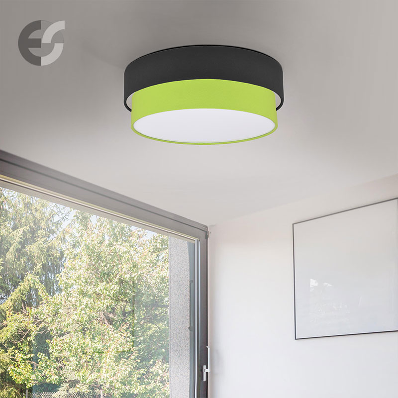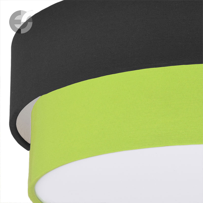 Осветително тяло - плафон CAKE, изработен от метална основа, два текстилни абажура и бял PVC разсейвател. Плафонът се предлага в над 50 различни комбинации от цветове. Изберете най-подходящата за вас комбинация от цветове и добавете към всяка стая модерен акцент и светлина. Осветителното тяло е подходящо за осветление на спалня, осветление за всекидневна, осветление за детска стая, осветление за кухня, осветление за коридор.