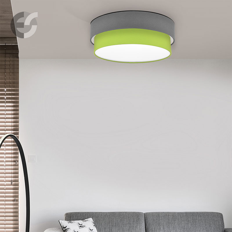 Осветително тяло - плафон CAKE, изработен от метална основа, два текстилни абажура и бял PVC разсейвател. Плафонът се предлага в над 50 различни комбинации от цветове. Изберете най-подходящата за вас комбинация от цветове и добавете към всяка стая модерен акцент и светлина. Осветителното тяло е подходящо за осветление на спалня, осветление за всекидневна, осветление за детска стая, осветление за кухня, осветление за коридор.