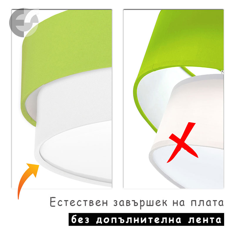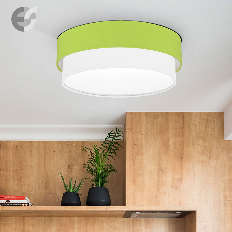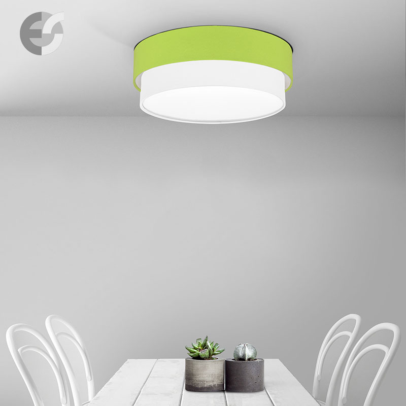 Осветително тяло - плафон CAKE, изработен от метална основа, два текстилни абажура и бял PVC разсейвател. Плафонът се предлага в над 50 различни комбинации от цветове. Изберете най-подходящата за вас комбинация от цветове и добавете към всяка стая модерен акцент и светлина. Осветителното тяло е подходящо за осветление на спалня, осветление за всекидневна, осветление за детска стая, осветление за кухня, осветление за коридор.