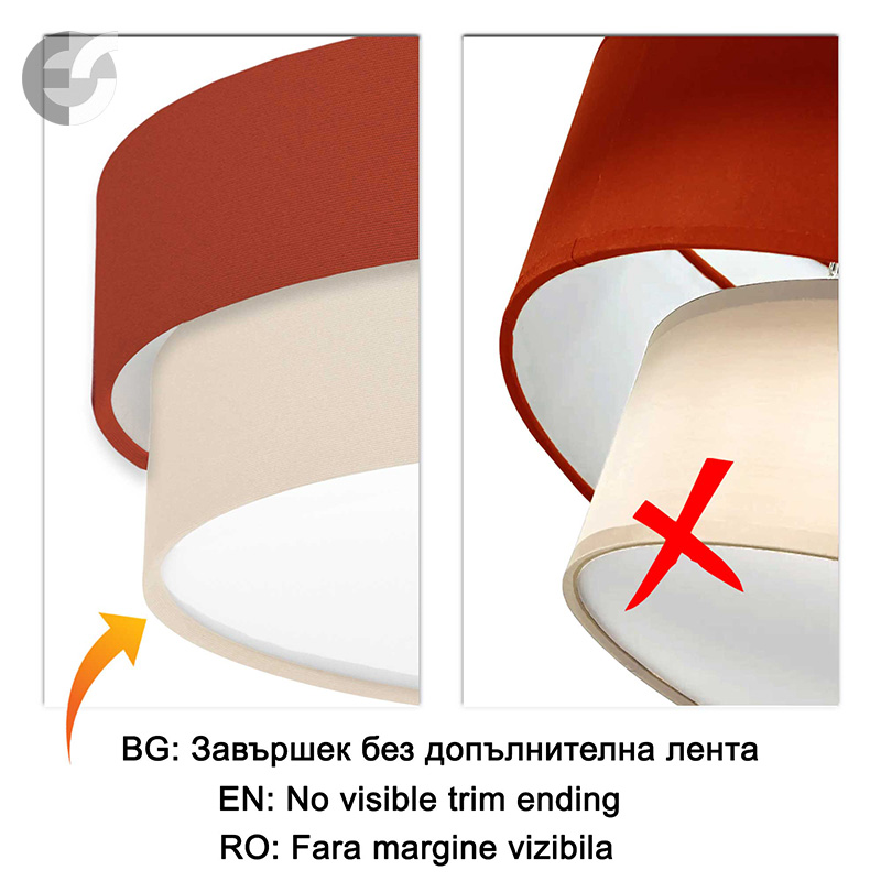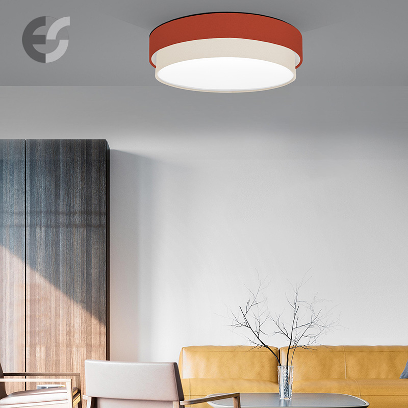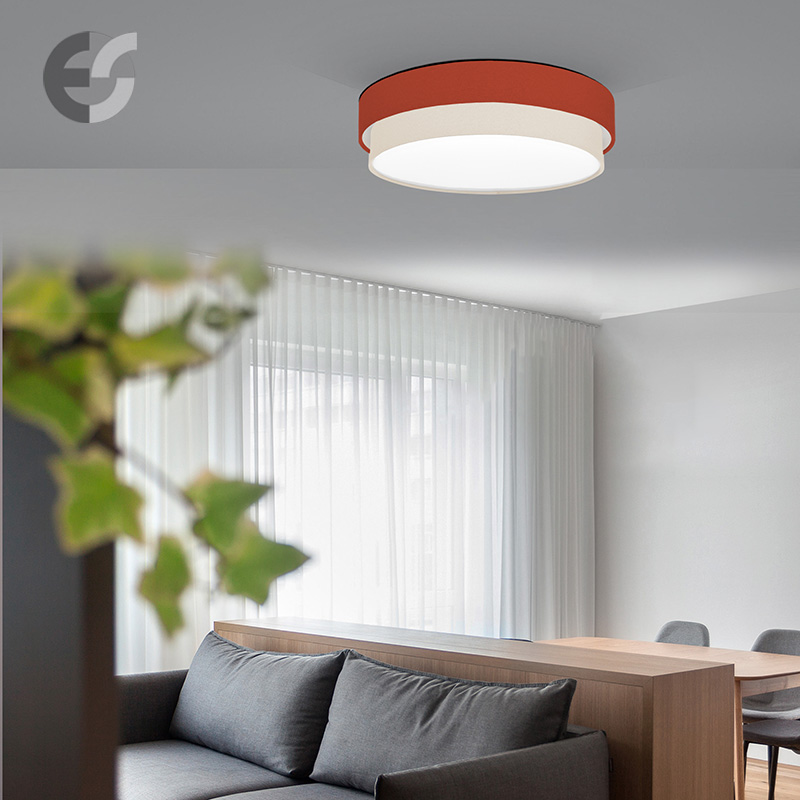 Осветително тяло - плафон CAKE, изработен от метална основа, два текстилни абажура и бял PVC разсейвател. Плафонът се предлага в над 50 различни комбинации от цветове. Изберете най-подходящата за вас комбинация от цветове и добавете към всяка стая модерен акцент и светлина. Осветителното тяло е подходящо за осветление на спалня, осветление за всекидневна, осветление за детска стая, осветление за кухня, осветление за коридор.