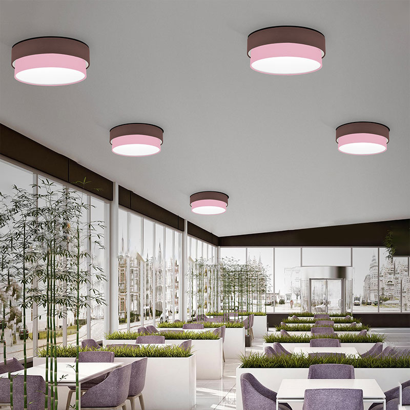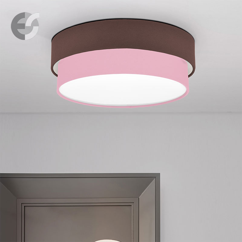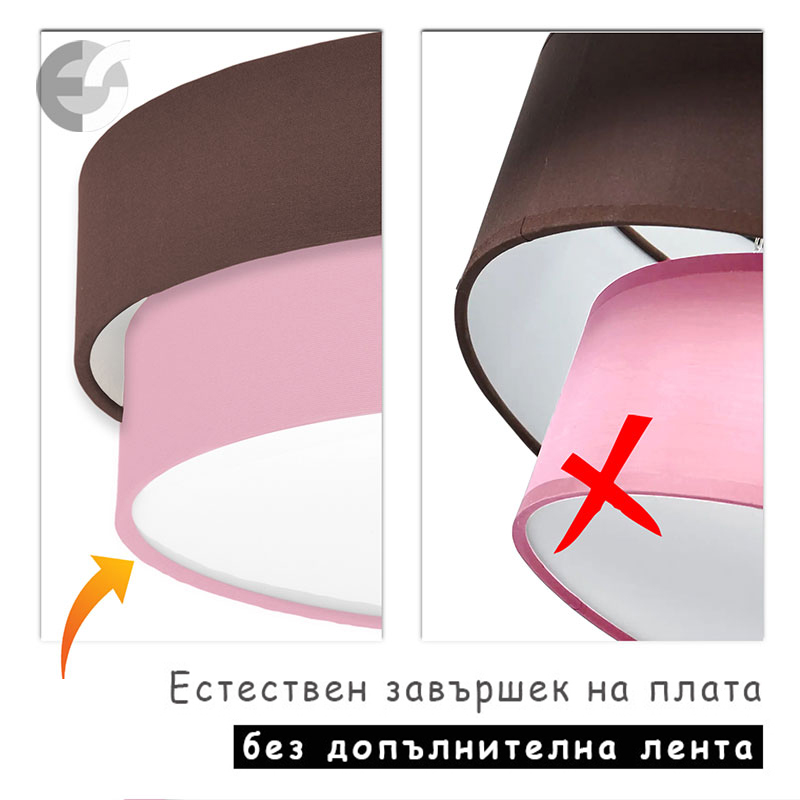 Осветително тяло - плафон CAKE, изработен от метална основа, два текстилни абажура и бял PVC разсейвател. Плафонът се предлага в над 50 различни комбинации от цветове. Изберете най-подходящата за вас комбинация от цветове и добавете към всяка стая модерен акцент и светлина. Осветителното тяло е подходящо за осветление на спалня, осветление за всекидневна, осветление за детска стая, осветление за кухня, осветление за коридор.