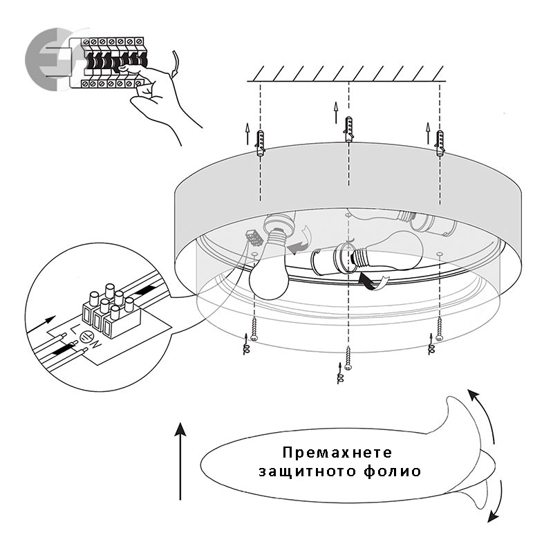 Електрическата част на това осветително тяло позволява използването на LED (диодни) или енергоспестяващи крушки - 3 x E27, максимум 40W.