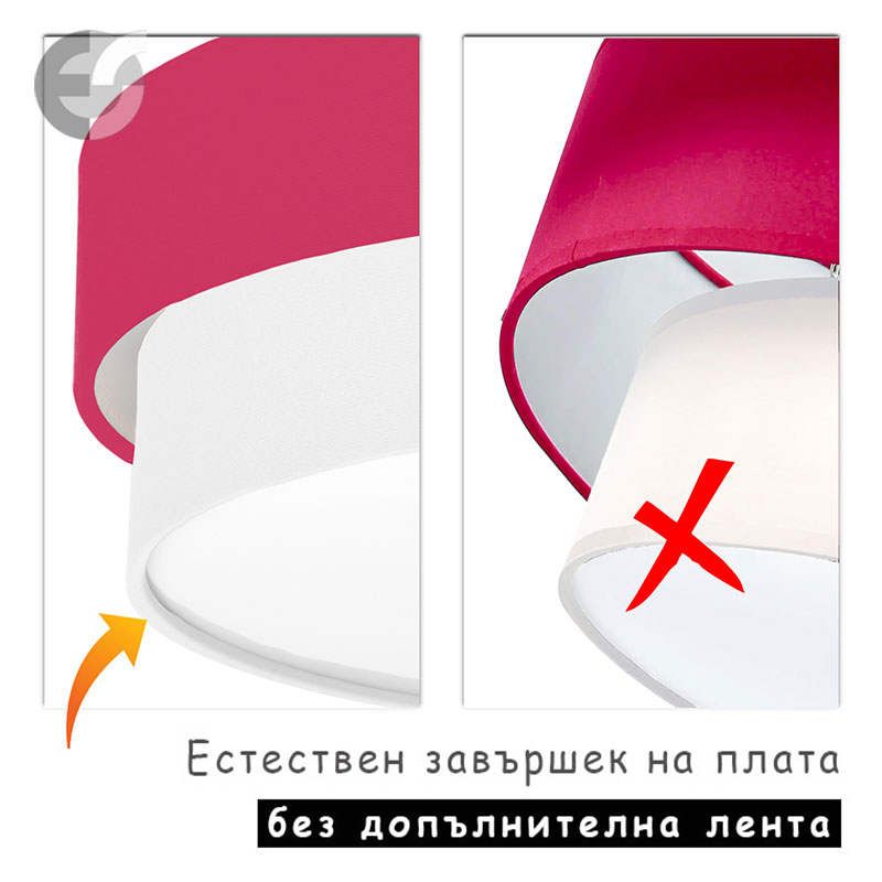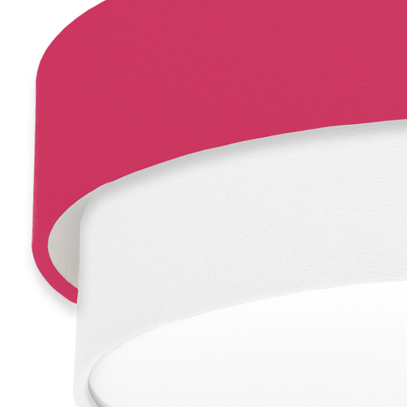 Осветително тяло - плафон CAKE, изработен от метална основа, два текстилни абажура и бял PVC разсейвател. Плафонът се предлага в над 50 различни комбинации от цветове. Изберете най-подходящата за вас комбинация от цветове и добавете към всяка стая модерен акцент и светлина. Осветителното тяло е подходящо за осветление на спалня, осветление за всекидневна, осветление за детска стая, осветление за кухня, осветление за коридор.