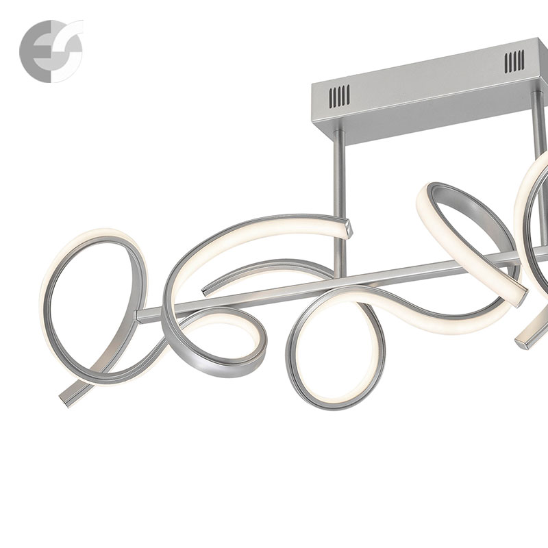 Осветително тяло - LED модерен плафон Curls, изработен от метална основа в сив цвят и разсейвател от 3 светлинни рамена. Подходящ за осветление на всекидневна, осветление на трапезария и осветление на спалня. Производител Leuchten Direkt, Германия.