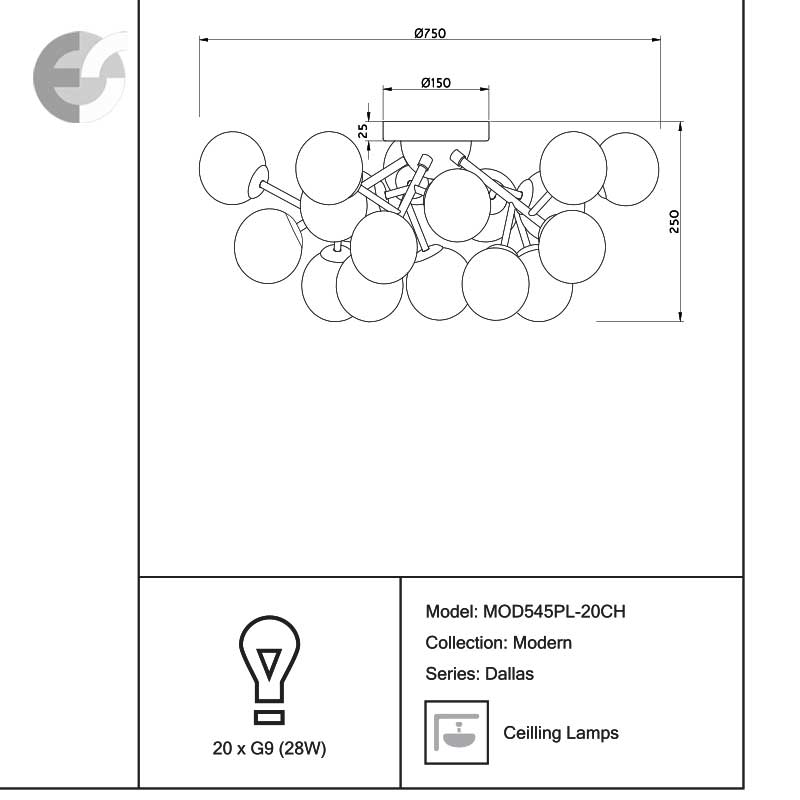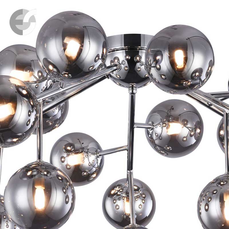 Плафон Dallas е не просто осветително тяло, а истинско произведение на изкуството. Изработен от метал в стилен цвят хром и разсейватели от опушено издухано стъкло. Лампата за таван е с уникален дизайн, със симулация на молекуларна структура, която го прави изключително интересен и модерен. Осветителното тяло Dallas е идеално за осветление във всекидневна, спалня или коридор, където може да създаде уникална атмосфера и да бъде акцент в интериора.