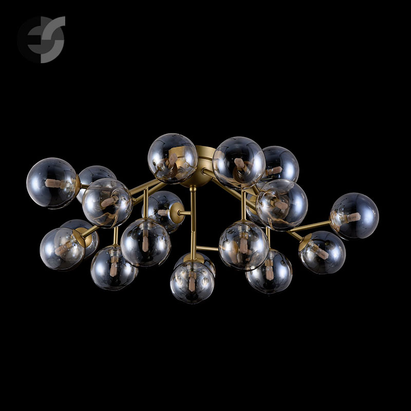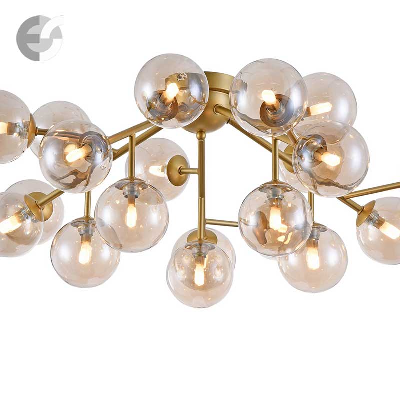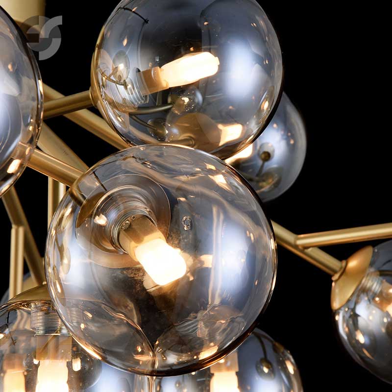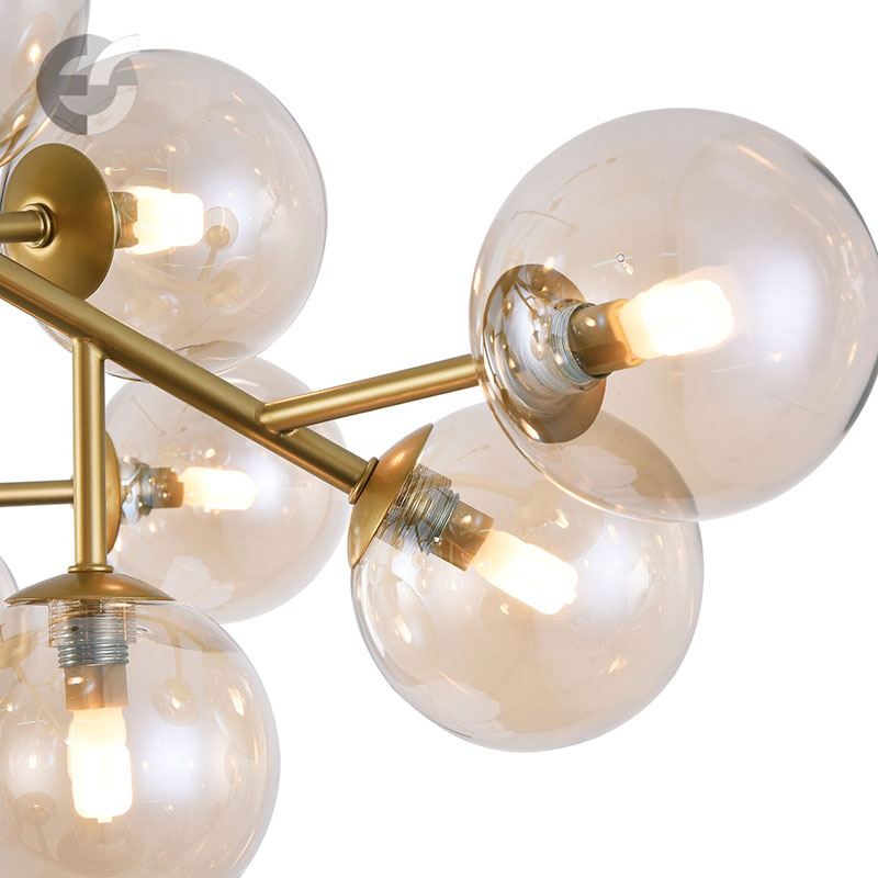 Плафон Dallas е не просто осветително тяло, а истинско произведение на изкуството. Изработен от метал в стилен златист цвят и разсейватели от прозрачно издухано стъкло. Лампата за таван е с уникален дизайн, със симулация на молекуларна структура, която го прави изключително интересен и модерен. Осветителното тяло Dallas е идеално за осветление във всекидневна, спалня или коридор, където може да създаде уникална атмосфера и да бъде акцент в интериора.