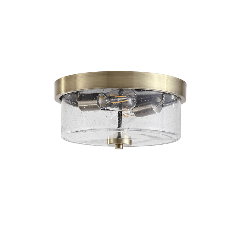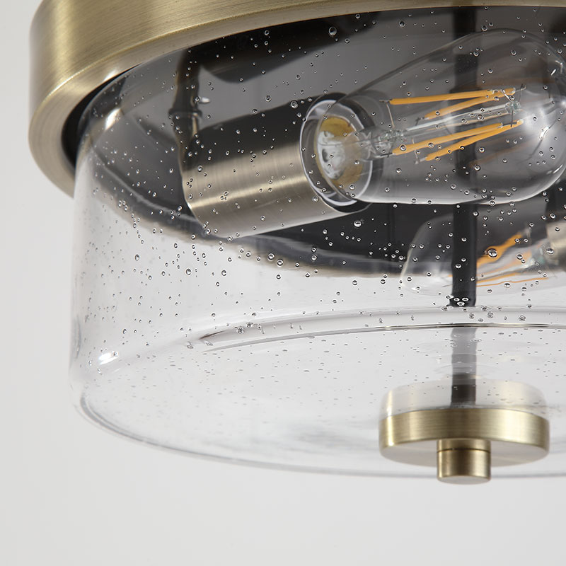 Плафон Preston съчетава ретро вдъхновение със съвременна елегантност, благодарение на антик месинговия финиш и изискания прозрачен стъклен абажур със ситен балонен ефект (seeded glass). Този ефект създава интересна игра на светлина и добавя характер на осветителното тяло.
