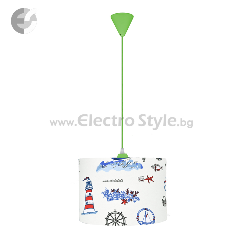 Осветително тяло - полилей за детска стая RED ANCHOR, изработен от метална основа, текстилен абажур с щампа и PVC пендел с текстилен кабел. Можете да поръчате полилея с пендел по избор - оранжев, жълт, зелен, бял, син, червен, розов и др. Производител COUP LIGHT, България.