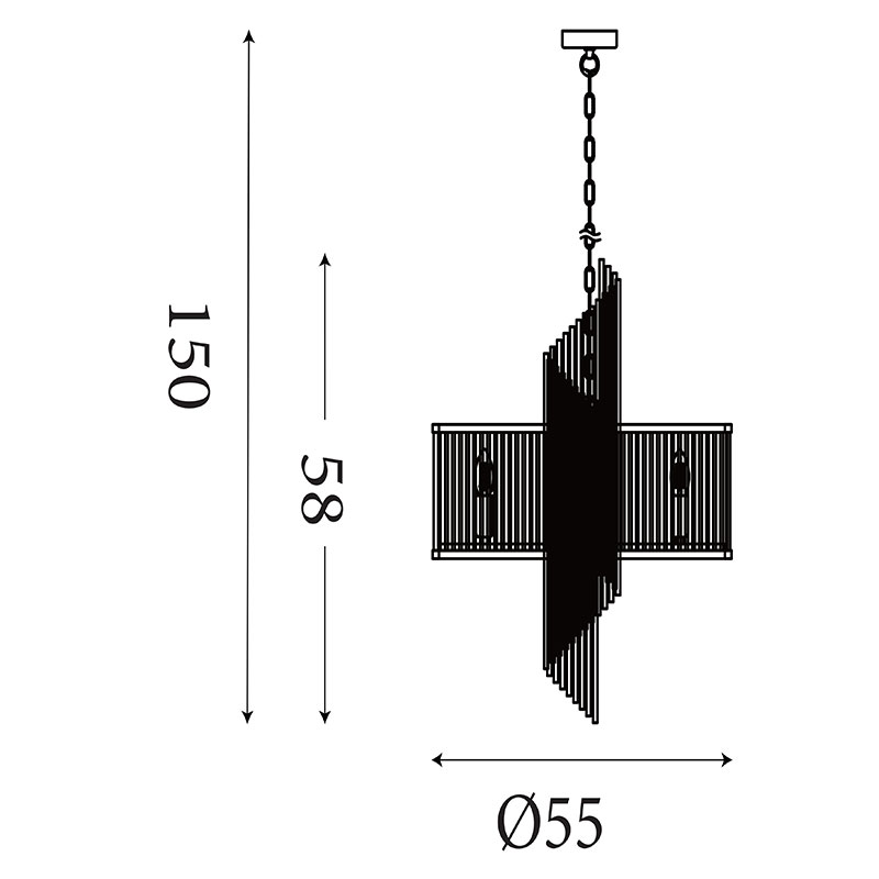 Полилей Lara е изработен от метал в елегантен златист цвят, комбиниран с декоративни стъклени пръчки от прозрачно стъкло. Висящата лампа впечатлява с кръгла форма и фино подредени стъклени елементи, които пречупват светлината, и създават изразителен, но балансиран визуален ефект.