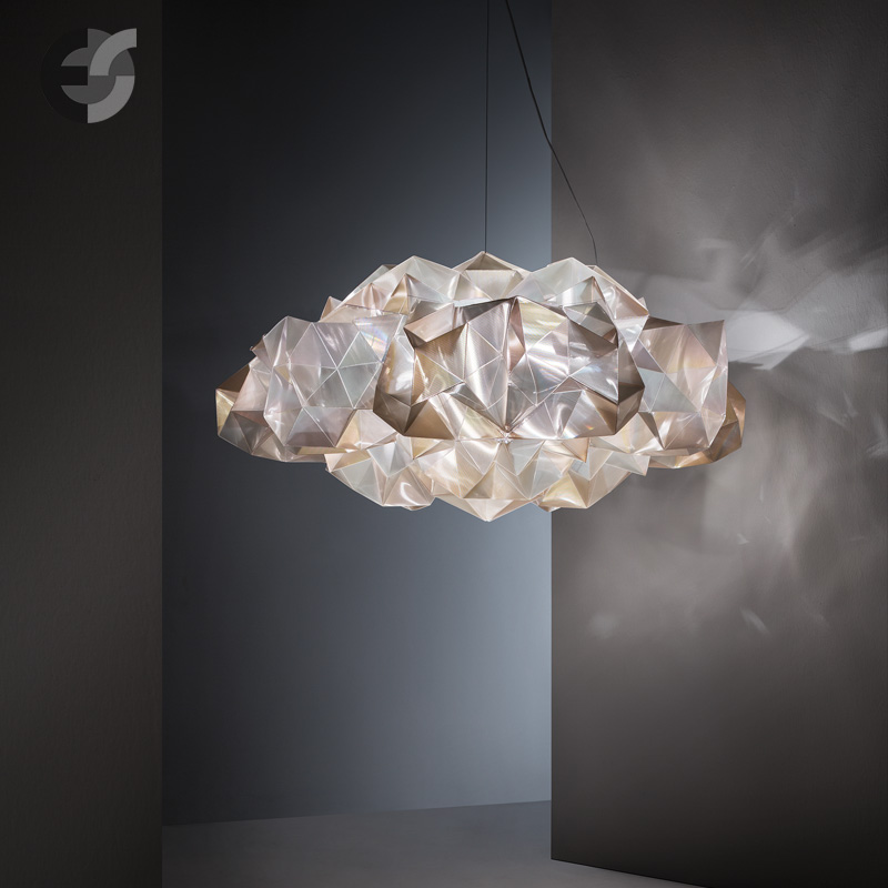 Полилей DRUSA е проектиран от италианския дизайнер Адриано Рашеле и олицетворява неговия почерк – органични форми и поетично отношение към светлината. Лампата е изработена от патентования материал Lentiflex®, разработен от Slamp – иновативен технополимер, който имитира структурата на призми. Lentiflex® улавя и насочва светлината по уникален начин, създавайки усещане за флуидност и живо сияние. Във вариант Velvet повърхността отразява светлината топло и меко, придавайки елегантност и уют на всяко помещение.