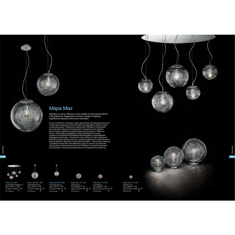 Стилен и модерен полилей Mapa Mаx с хромирана метална основа и дифузер от прозрачно стъкло с декоративни алуминиеви нишки вътре. Производител Ideal Lux, Италия.