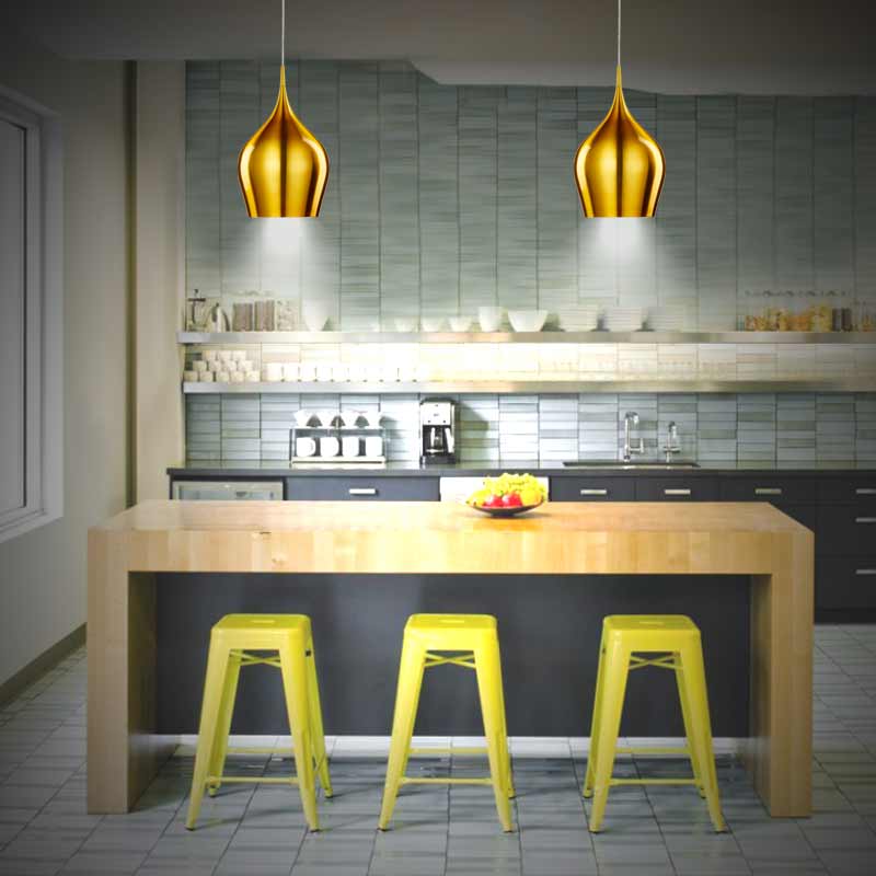 Осветително тяло - полилей с оригинален и модерен дизайн, изработен от алуминий, боядисан в златист цвят. Осветителното тяло е подходящо за кухня, трапезария, всекидневна или спалня. Серия осветителни тела Vibrant на Searchlight, Англия.