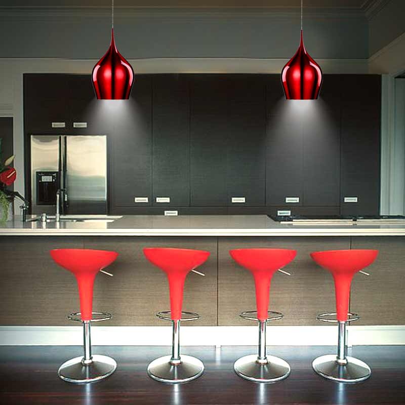 Осветително тяло - полилей с оригинален и модерен дизайн, изработен от алуминий, боядисан в червен цвят. Осветителното тяло е подходящо за кухня, трапезария, всекидневна или спалня. Серия осветителни тела Vibrant на Searchlight, Англия.