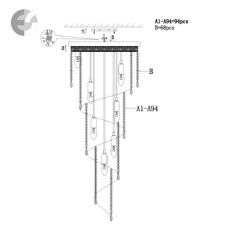 Осветителното тяло е в луксозен стил и е подходящо за осветление за хотел, спалня или всекидневна.